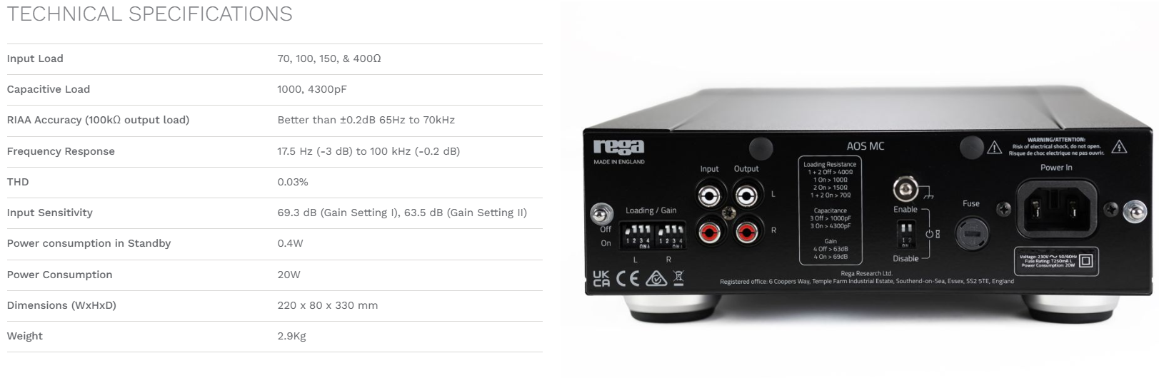 Aos MC to w pełni analogowy, dwustopniowy przedwzmacniacz gramofonowy dla wkładek MC, oparty konstrukcyjnie na rozwiązaniach z referencyjnego Rega Aura MC.