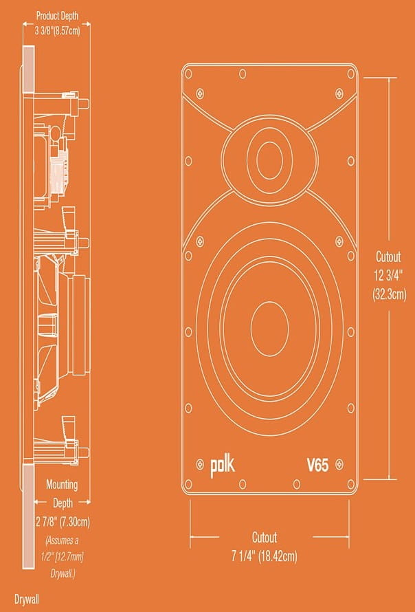 Głośnik do zabudowy ściennej Polk Audio V65 po instalacji wtapia się w ścianę, nie zwracając na siebie uwagi. Dzięki magnetycznej maskownicy gotowej do pomalowania, głośnik dopasowuje się do designu każdego pomieszczenia. Niski profil głośnika pozwala na instalacje praktycznie w każdym miejscu. Jest to świetne rozwiązanie dla entuzjastów wysokiej jakości dźwięku, którzy jednocześnie cenią estetykę wykonania i bezproblemowość montażu.