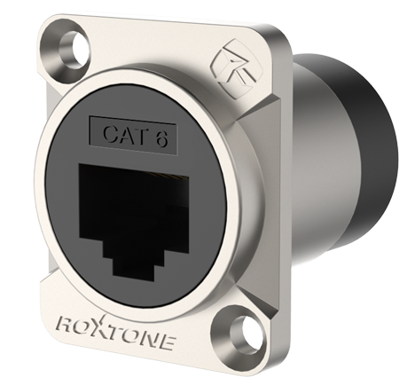 - Profesjonalny - Standardowa obudowa typu D RAE8FD-C6 mieści dowolną wtyczkę RJ45. Gniazda są łatwe w łączeniu, bez użycia narzędzi, za pomocą kabla sieciowego. Marka ROXTONE wygrawerowana jest na powłoce a sama konstrukcja podlega ochronie patentowej.