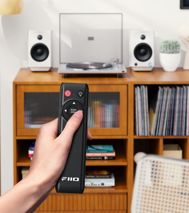 Steruj zdalnie muzyką bez wstawania, w tym jej włączanie/wyłączanie, uruchamianie/zatrzymywanie, powtarzanie, regulacja jasności światła, regulacja kierunku ramienia gramofonu i korzystanie z innych funkcji. TT13 to niekończące się zanurzanie się w wyjątkowym brzmieniu winylu.