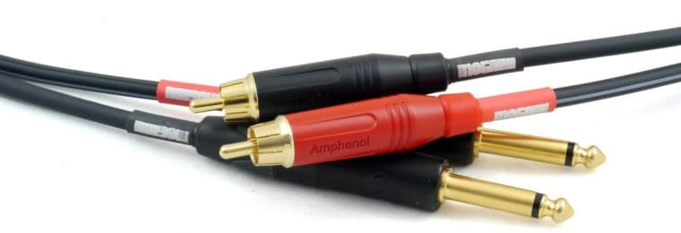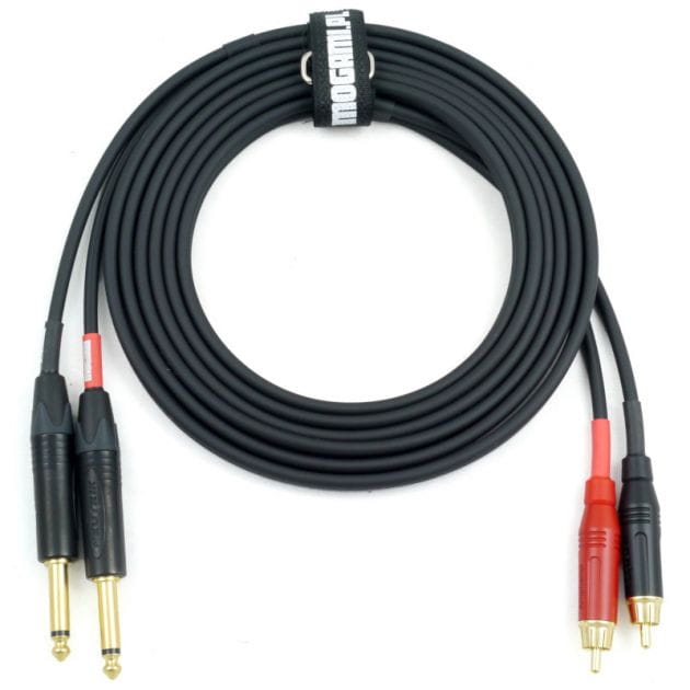 Przewód interkonekt DJ PRO 2RCA-2TS na przewodzie 2965 - super-elastycznym podwójnym przewodzie współosiowym 75Ω ze złączami TS Neutrik i RCA Amphenol gwarantującymi doskonałe przewodzenie i pewny styk.