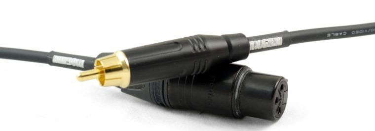 Przewód interkonekt DJ PRO RCA-XLRM na przewodzie 2964 - super-elastycznym przewodzie współosiowym 75Ω ze złączami XLR Neutrik i RCA Amphenol gwarantującymi doskonałe przewodzenie i pewny styk.
