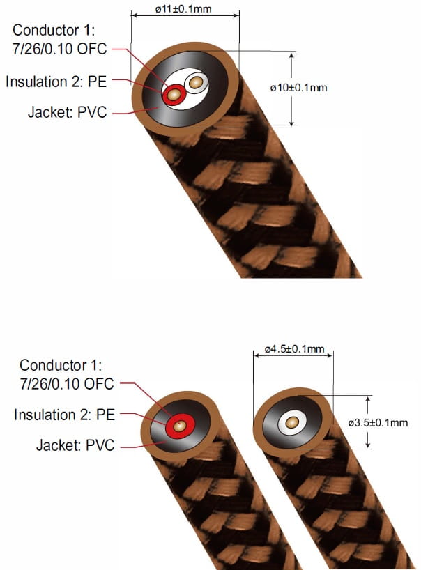 • Przewodniki wykonane z miedzi beztlenowej, co zapewnia najlepszą możliwą jakość dźwięku i wydajność