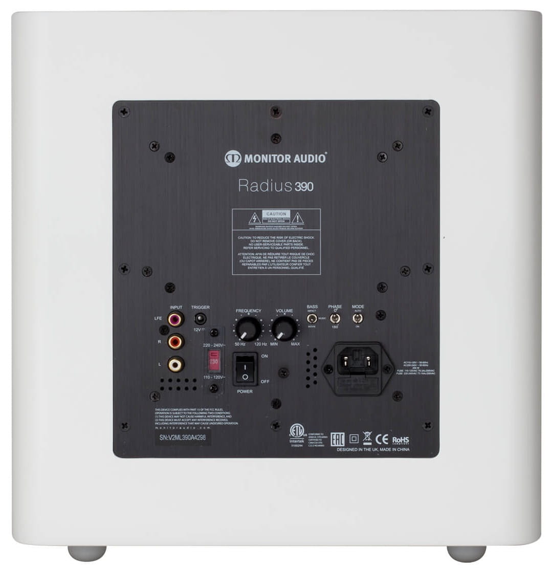 Niski zakres Radiusa 390 jest zwinny i rytmiczny, utrzymuje przy tym niesamowitą głębię – a to wszystko w niewielkiej, stylowej „kostce”. Monitor Audio Radius 390 będzie idealny do nowoczesnych pomieszczeń i wymagających ścieżek dźwiękowych, a tym samym jest bezkonkurencyjny w swojej klasie. Użytkownik może skorzystać z kilku ustawień equalizera w formatach Music, Movie i Impact oraz automatycznym wzbudzeniem poprzez 12 V Trigger.