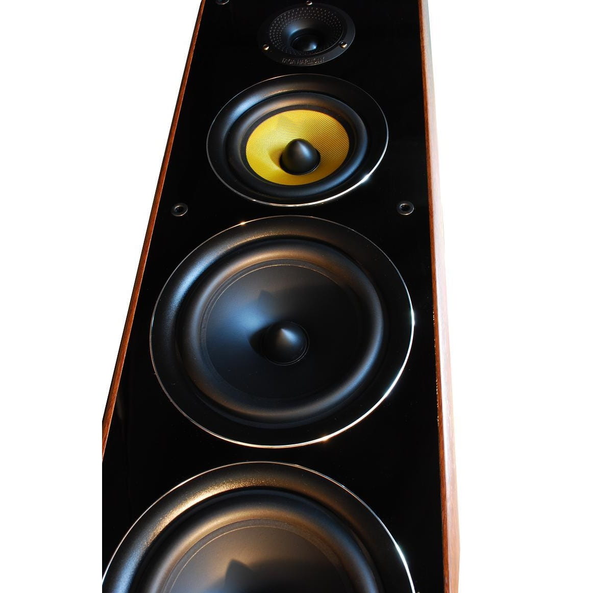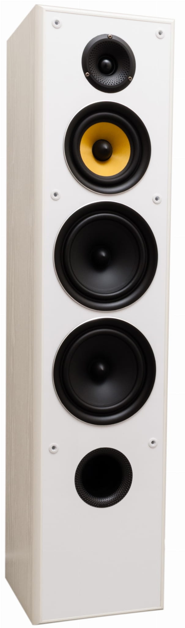 Panel przedni głośnika wysokotonowego w kształcie tuby wraz z wklęsłymi otworkami, pełni rolę dyfuzora, który w szerszym zakresie rozprasza wysokie tony po pomieszczeniu.