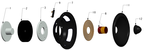 Sztywna i bardzo lekka konstrukcja membrany z włókna szklanego z elastycznym gumowym zawieszeniem pozwala poruszać się bardzo szybko i z dużą częstotliwością. Wszystko to zapewnia bardzo bogaty, przestronny, dobry dźwięk średnich częstotliwości. Masywna cewka wraz z Φ70 magnesem znoszą wysokie temperatury i moce wejściowe. Nakładka przeciwpyłowa w formie pocisku dodatkowo zwiększa dyspersję w wyższych zakresach średnich częstotliwości.