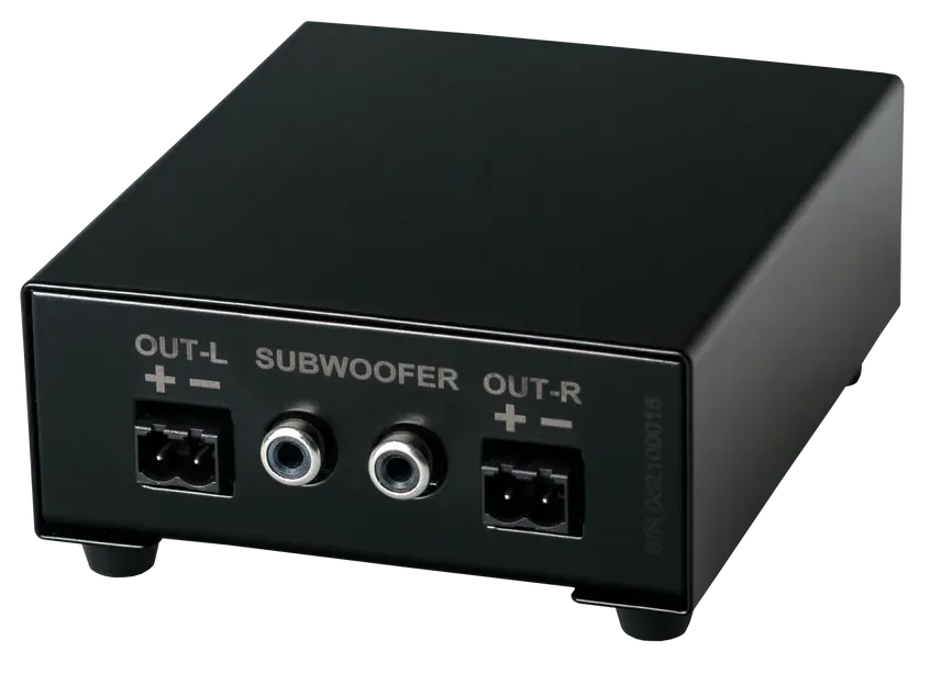 Pasywna zwrotnica z wysokiej jakości kondensatorami częstotliwości audio + wyjścia RCA dla subwoofera.