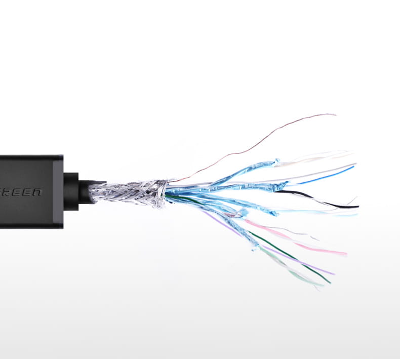 Pozłacane złącza gwarantują wytrzymałość i stabilność połączenia. 3 warstwy ochronne zapewniają długą żywotność przewodu, mniejszą podatność na uszkodzenia, a miedziany kabel pozwala na osiągnięcie prędkości przesyłu nawet do 10Gb/s.