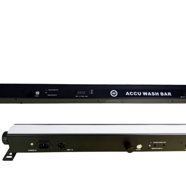 LIGHT4ME ACCU WASH BAR to akumulatorowa listwa oświetleniowa wash bar LED dla DJ-ów, firm eventowych, zespołów i realizatorów, którzy chcą szybko zbudować efektowne tło świetlne bez wykorzystania przewodów zasilających. Świetnie sprawdza się na weselach, eventach firmowych, w salach bankietowych, klubach i na scenie, zwłaszcza tam, gdzie liczy się mobilność i szybki montaż. Dzięki wbudowanemu akumulatorowi 8800 mAh, sterowaniu DMX i W-DMX oraz szerokiemu kątowi świecenia 120° listwa pomaga równomiernie oświetlić ścianę, scenografię albo stanowisko DJ ✅ Wyobraź sobie salę weselną, gdzie w kilka chwil ustawiasz listwę w pionie przy filarze i tworzysz kolorowe tło bez plątaniny przewodów.