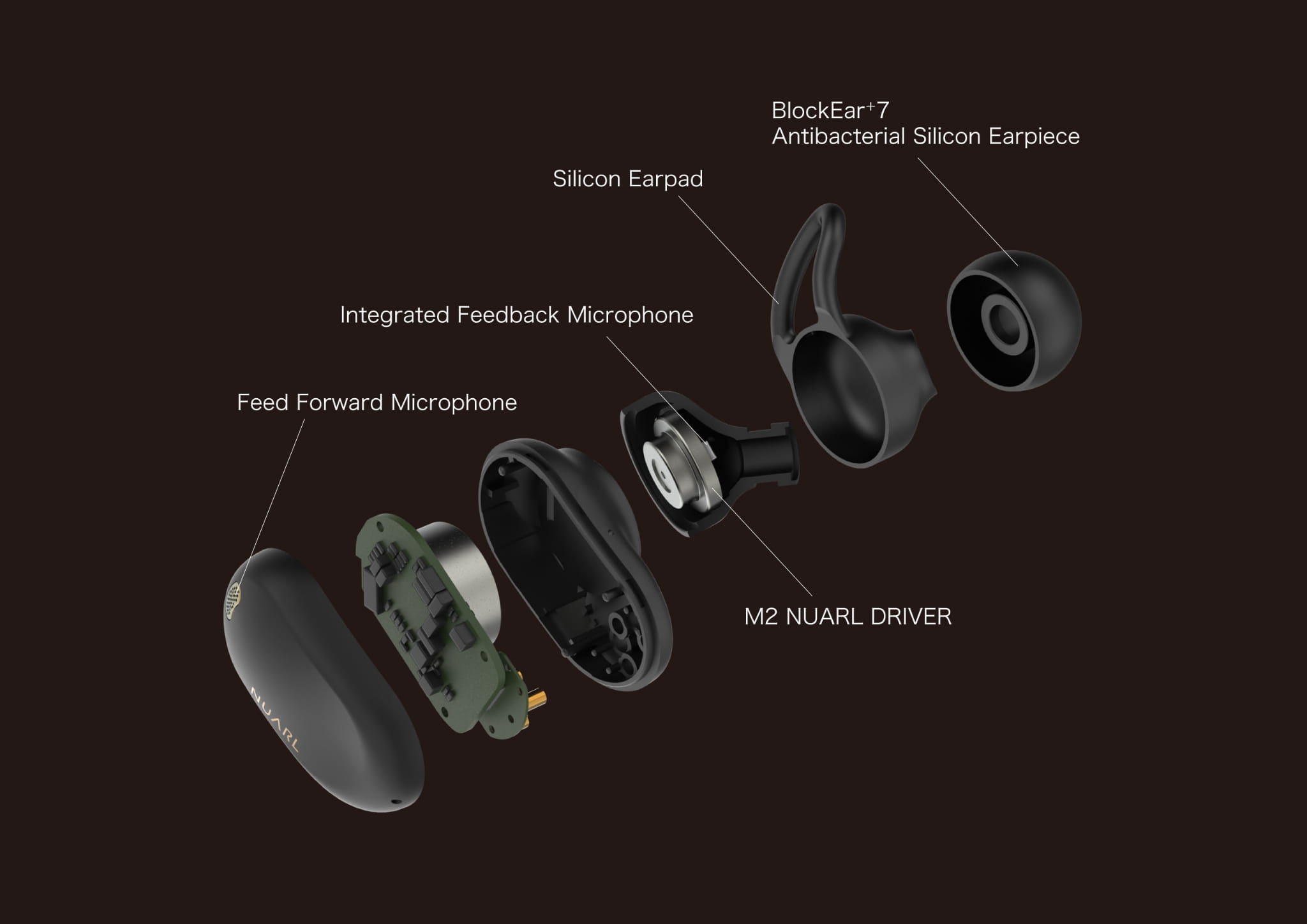 NUARL NEXT1 mają hybrydowy system aktywnej redukcji szumu (ANC), który efektywnie zbiera nie tylko odgłosy z otoczenia (mikrofony na przednim panelu), ale również z komory wewnętrznej. Umożliwia to bardziej precyzyjne analizowanie danych i generowanie fal niwelujących szum, przy zachowaniu wysokiej jakości dźwięku i niskiego ciśnienia w kanale słuchowym, dzięki czemu NEXT1 nie męczą nawet przy dłuższych odsłuchach.