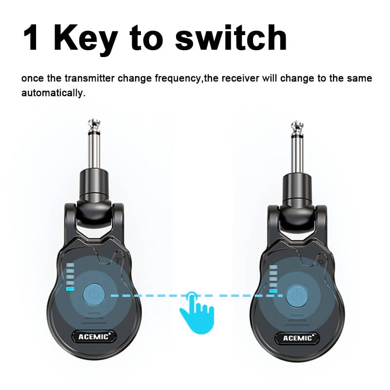 - Bezprzewodowy nadajnik i odbiornik Plug-N-Play zaprojektowany specjalnie do gitar