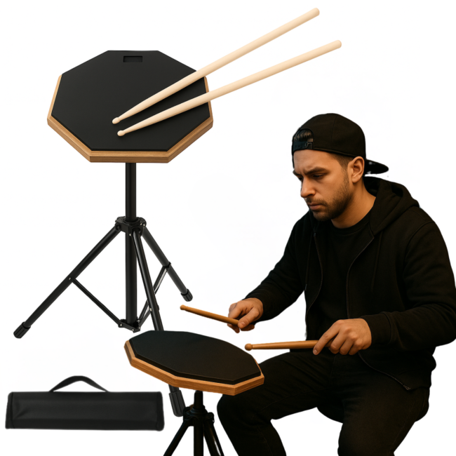 Zestaw z padem perkusyjnym V-TONE PDS1 BK zawiera wszystko, czego potrzebujesz do efektywnych treningów perkusyjnych. Oprócz pada i statywu, w zestawie znajdziesz również świetnej jakości pałeczki perkusyjne oraz wygodny pokrowiec do przechowywania i transportu. Całość waży zaledwie 2 kg, co czyni zestaw wyjątkowo przenośnym i łatwym do zabrania ze sobą na każde zajęcia czy występy. Dzięki temu kompletnemu zestawowi możesz ćwiczyć w dowolnym miejscu i czasie ✅.