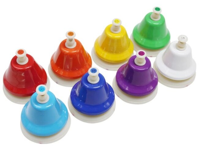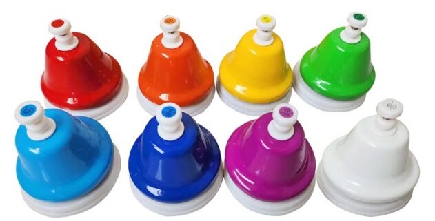 Dzwonki naciskane diatoniczne kolorowe ręczne zestaw 8 szt. dla dzieci - V-TONE RB8 | RATY | SALA ODSŁUCHOWA POZNAŃ