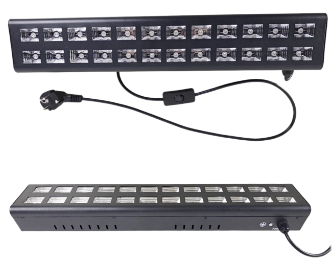 Light4Me UV Bar 2x12 została wyposażona w ręczne sterowanie oraz zintegrowany przewód z przełącznikiem, dzięki czemu jego obsługa jest wyjątkowo prosta oraz intuicyjna ✔️ Dwa uchwyty montażowe umożliwiają szybkie i stabilne zamocowanie listwy na statywie, kratownicy lub ścianie, co pozwala dopasować kąt nachylenia urządzenia do każdego zastosowania ⚡