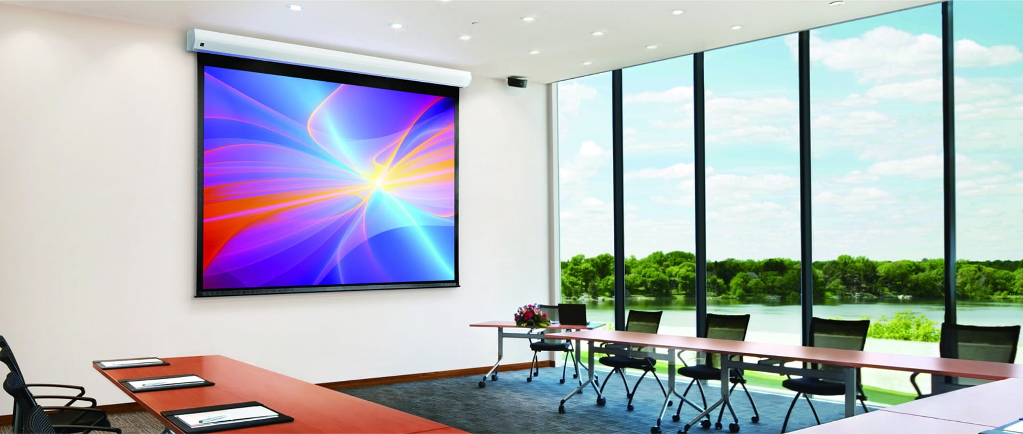Ekran projekcyjny elektrycznie rozwijany ze zintegrowanym sterowaniem IR (ew.RF) + złącze RS + Dry Contact - Suprema Screen Andromeda Elegant IM, Format 16:9, Materiał projekcyjny Matt White HD | RATY 0% | SALA ODSŁUCHOWA POZNAŃ