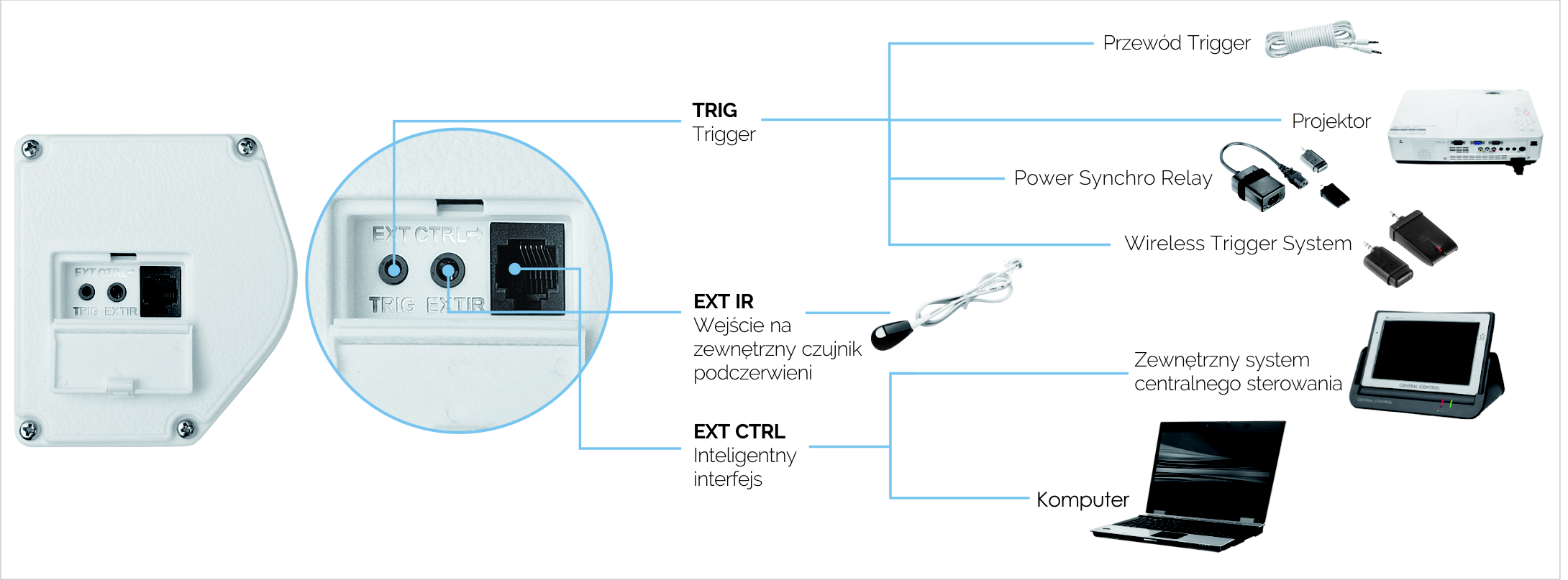 • Wejście dla zewnętrznej czujki IR (w komplecie),