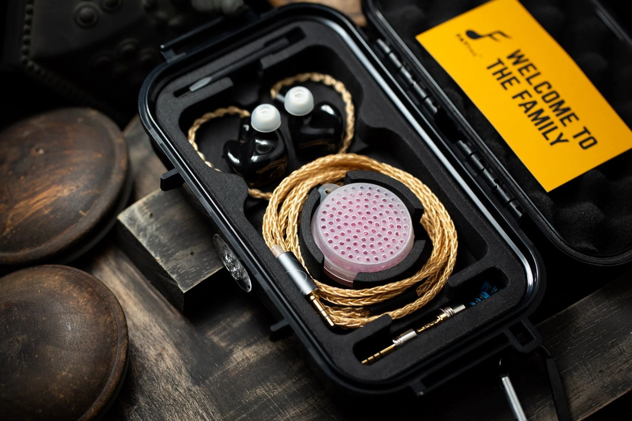Zespół FATfreq dla flagowych IEM-ów przygotował ponadto specjalny przewód premium “Gold”, który można dokupić osobno. To 8-żyłowy kabel ze srebra pokrytego złotem, który gwarantuje bardziej muzykalne brzmienie i jeszcze większą scenę. Gold dostępny jest także z modułowym wtykiem z końcówkami 2,5 mm, 3,5 mm i 4,4 mm.