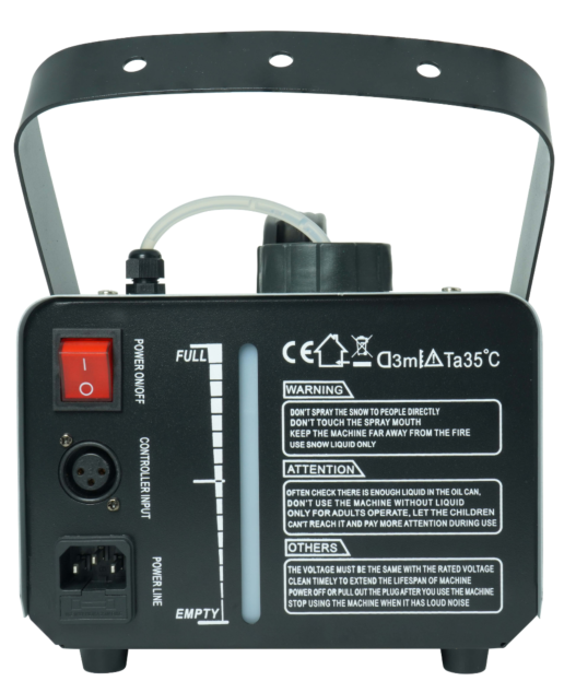 Steruj efektem śniegu zdalnie za pomocą pilota IR lub kontrolera przewodowego – dokładnie tak, jak Ci wygodnie ✨. Wytwornica jest wyposażona w przełącznik zasilania oraz wskaźnik poziomu płynu, co pozwala na bezpieczne i intuicyjne użytkowanie ✔️. Dzięki solidnemu uchwytowi montażowemu i rączce do przenoszenia, możesz ustawić urządzenie w dowolnym miejscu ✅. Kompaktowe wymiary i waga tylko 3,1 kg czynią ją łatwą w transporcie nawet podczas intensywnego harmonogramu wydarzeń⚡.