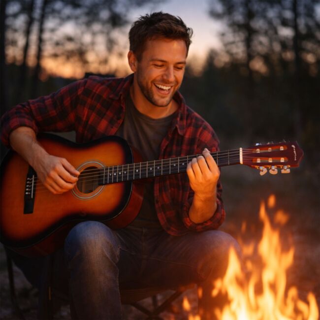 Ta gitara sprawdzi się doskonale dla uczniów szkół muzycznych, kursantów zajęć grupowych, samouków oraz osób, które po latach wracają do gry⚡. Jest też świetnym pomysłem na prezent – dla nastolatka z muzycznymi ambicjami, taty, który zawsze marzył o gitarze, czy partnerki kochającej śpiewać przy ognisku ✔️. Rozmiar 4/4 będzie odpowiedni dla osób od około 150 cm wzrostu❗