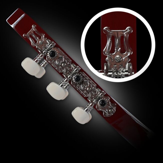 Model Suprimo CGS2 SB został wykonany z lekkiego, a zarazem wytrzymałego drewna lipowego, co zapewnia dobrą akustykę i stabilność strojenia ✔️. Gryf z drewna okoume pozwala na pewny chwyt i płynną zmianę akordów ❇️. Aż 18 progów oraz klasyczny kształt korpusu dają swobodę nauki utworów od najprostszych po bardziej zaawansowane ✳️. Dwa zaczepy na pasek umożliwiają grę na stojąco – świetne, np. do występów szkolnych czy prób zespołu ✴️