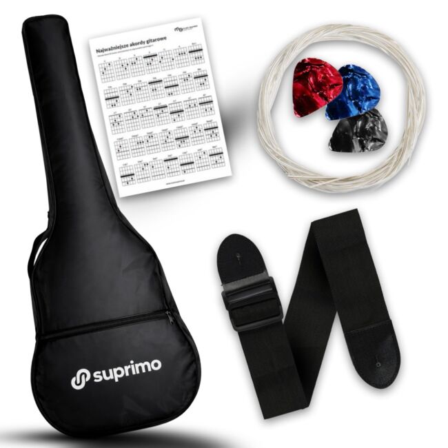 W odróżnieniu od wielu innych modeli, ten zestaw zawiera wszystko, co początkujący gitarzysta może potrzebować – od zapasowych strun po kostki i praktyczny pasek ✅. Dołączony pokrowiec ułatwia bezpieczny transport i przechowywanie, a akordy gitarowe pozwalają natychmiast rozpocząć naukę ulubionych piosenek ☑️. Dzięki temu nie musisz dokupować żadnych akcesoriów – to gotowy pakiet do startu z muzyką ✨.
