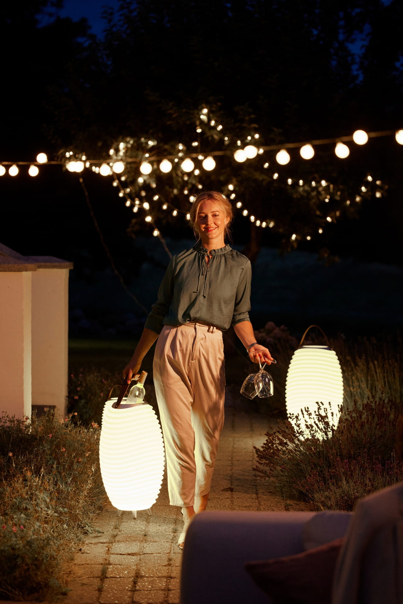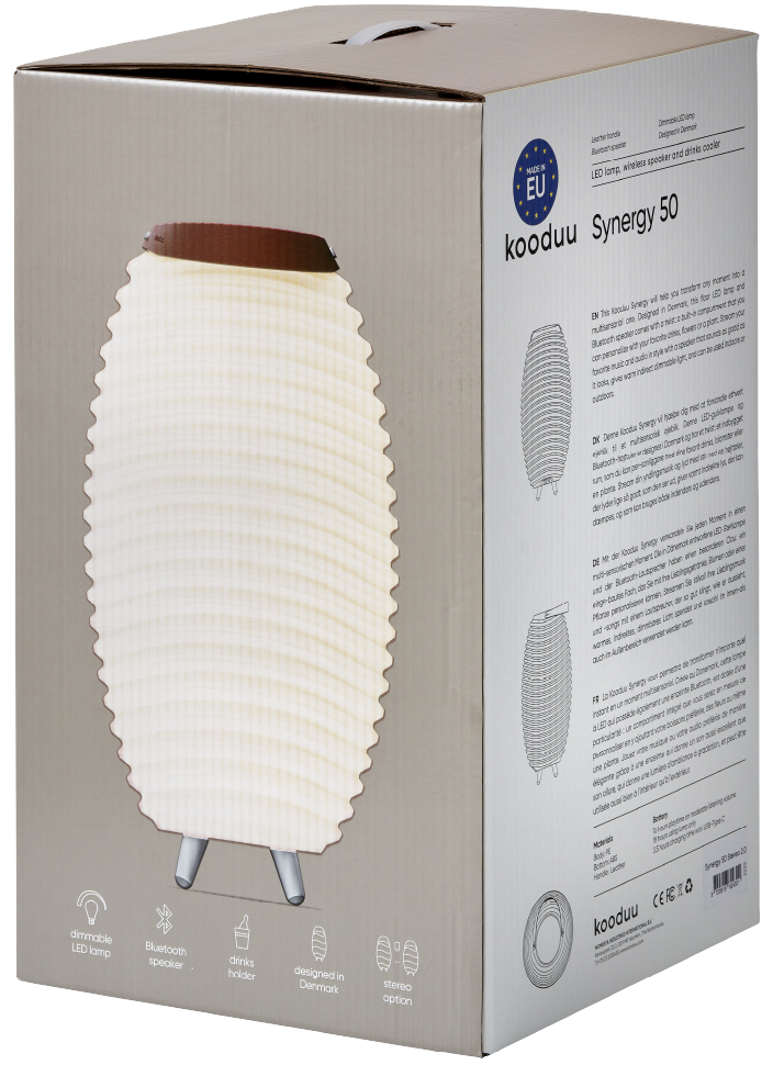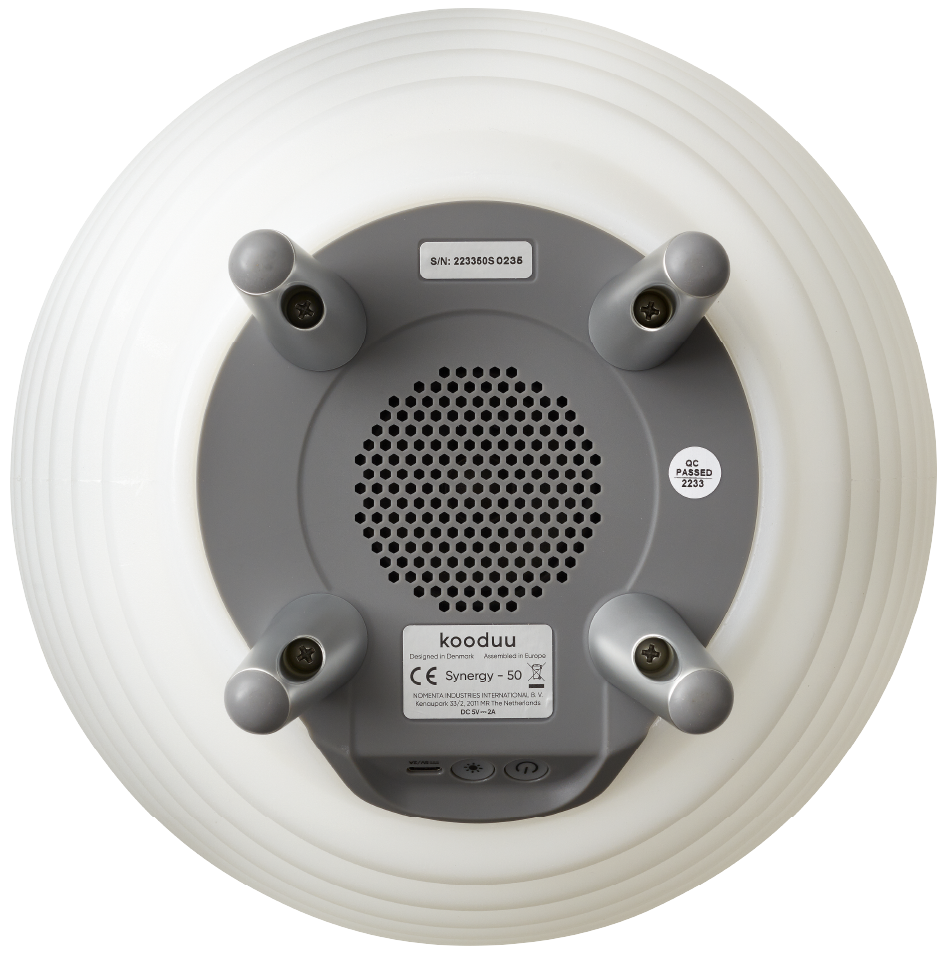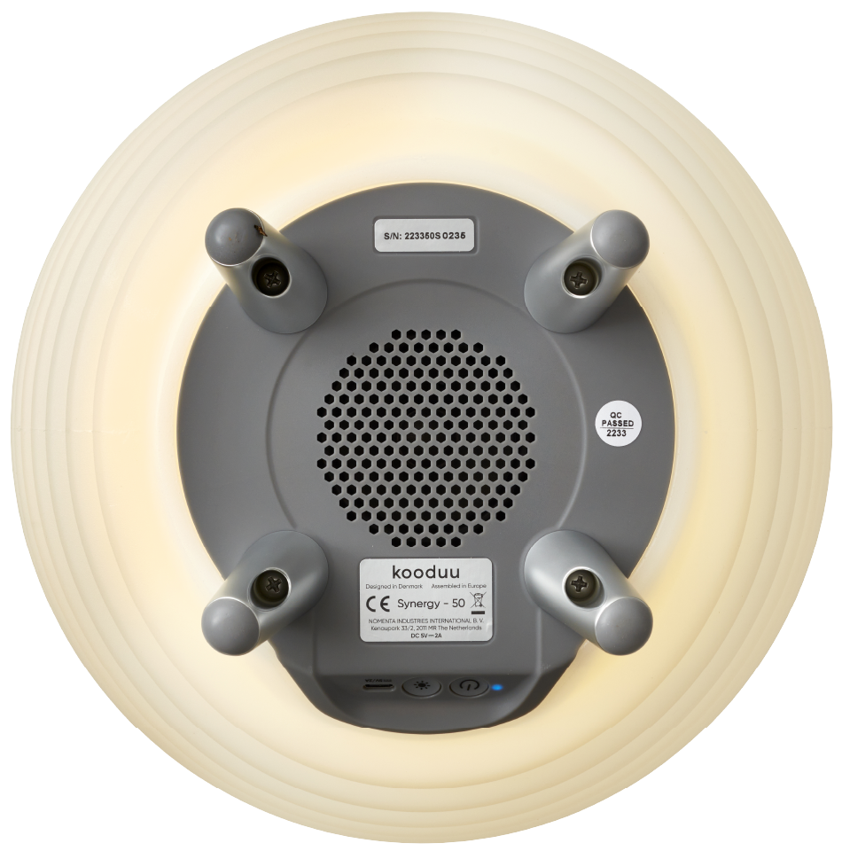 Synergy jest w 100% przenośny dzięki wbudowanej, ładowalnej baterii. Możesz zabrać go ze sobą na zewnątrz – do ogrodu, na patio czy balkon i cieszyć się muzyką oraz ambientowym światłem przez wiele godzin. Urządzenie świetnie sprawdzi się również jako centralny punkt każdego wnętrza, zarówno podczas codziennego relaksu, jak i specjalnych okazji. Wybór, jak i gdzie wykorzystasz Synergy, zależy tylko od Ciebie. Jego elegancki wygląd i wszechstronność sprawiają, że jest to doskonały wybór dla każdego, kto ceni sobie jakość i design.