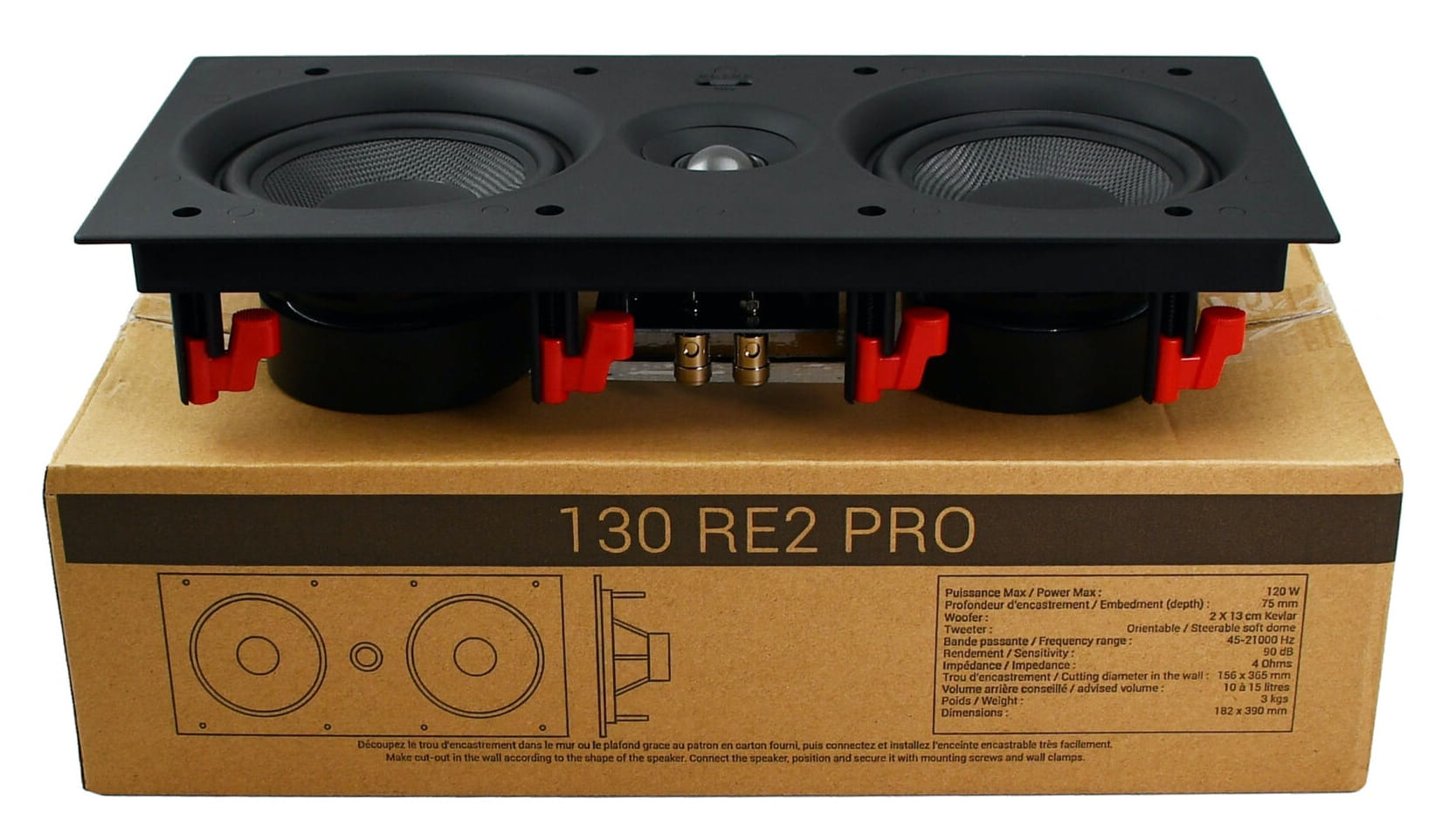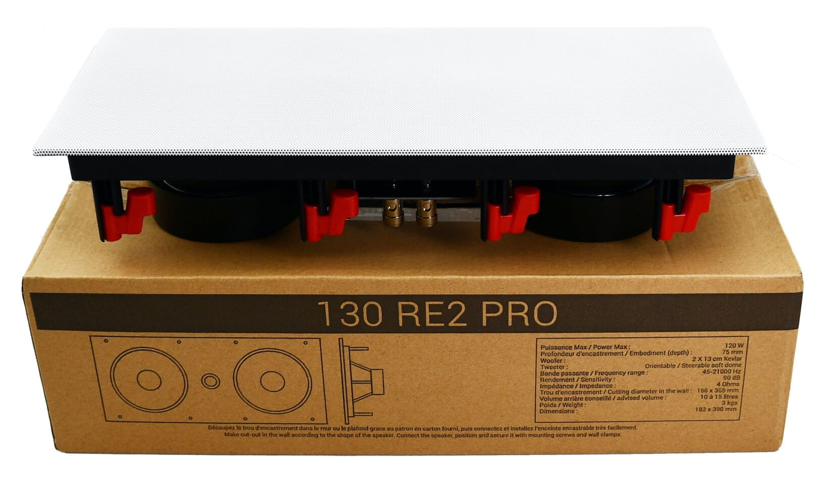 Głośnik wysokotonowy jest zintegrowany z regulowaną podstawką (+/- 20 °), co pozwala na regulację kierunku emisji wysokich częstotliwości, a tym samym idealnie kierować falę dźwiękową w kierunku obszaru odsłuchu. Głośnik IN-WALL, jak sama nazwa wskazuje, to głośnik, który można wbudować w ścianę. Pozwala, przy niewielkiej powierzchni i dyskretnej konstrukcji, zastąpić bardziej konwencjonalny głośnik zewnętrzny. 130 RE2 PRO można łatwo zainstalować. Wystarczy zrobić otwór o wymiarach 156 x 365 mm. Dla wygody instalatora z każdym głośnikiem dostarczany jest papierowy szablon montażowy. Głośniki INWALL, takie jak 130 RE2 PRO, nie udają, że zastępują głośniki półkowe, których głośność i filtr zostały zoptymalizowane. W jego konstrukcji zwrócono szczególną uwagę na jakość dźwięku. Zastosowano w nim głośnik z membraną z włókna Kevlar oraz regulowany głośnik wysokotonowy (tekstylna kopułka).