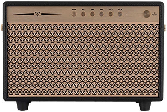 Naturalny i dobrze zrównoważony obraz dźwiękowy Naturalny i dobrze zrównoważony obraz dźwiękowy pochodzi ze sztywnego, średniotonowego głośnika niskotonowego z papierową membraną, który dzięki specjalnej powłoce może pracować zarówno przy niskich, jak i wysokich poziomach głośności, oraz jedwabnej kopułki głośnika wysokotonowego z wysokiej jakości magnesem neodymowym, który zapewnia ostry i bardzo szczegółowy dźwięk. Aby bas był mocny i precyzyjny, obudowa wykonana jest z MDF i wyposażona w port reflex, wraz z nóżkami akustycznymi, cechy te minimalizują straty efektu na wibracje i pozwalają głośnikowi niskotonowemu w pełni wykorzystać jego możliwości. Panel kontrolny i niestandardowa maskownica Dynavoice są w kolorze miedzianym, wykonane z anodyzowanego aluminium, dzięki czemu są wyjątkowo odporne, a dołączony pasek ułatwia przenoszenie głośnika.