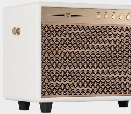 Naturalny i dobrze zrównoważony obraz dźwiękowy Naturalny i dobrze zrównoważony obraz dźwiękowy pochodzi ze sztywnego, średniotonowego głośnika niskotonowego z papierową membraną, który dzięki specjalnej powłoce może pracować zarówno przy niskich, jak i wysokich poziomach głośności, oraz jedwabnej kopułki głośnika wysokotonowego z wysokiej jakości magnesem neodymowym, który zapewnia ostry i bardzo szczegółowy dźwięk. Aby bas był mocny i precyzyjny, obudowa wykonana jest z MDF i wyposażona w port reflex, wraz z nóżkami akustycznymi, cechy te minimalizują straty efektu na wibracje i pozwalają głośnikowi niskotonowemu w pełni wykorzystać jego możliwości. Panel kontrolny i niestandardowa maskownica Dynavoice są w kolorze miedzianym, wykonane z anodyzowanego aluminium, dzięki czemu są wyjątkowo odporne, a dołączony pasek ułatwia przenoszenie głośnika.