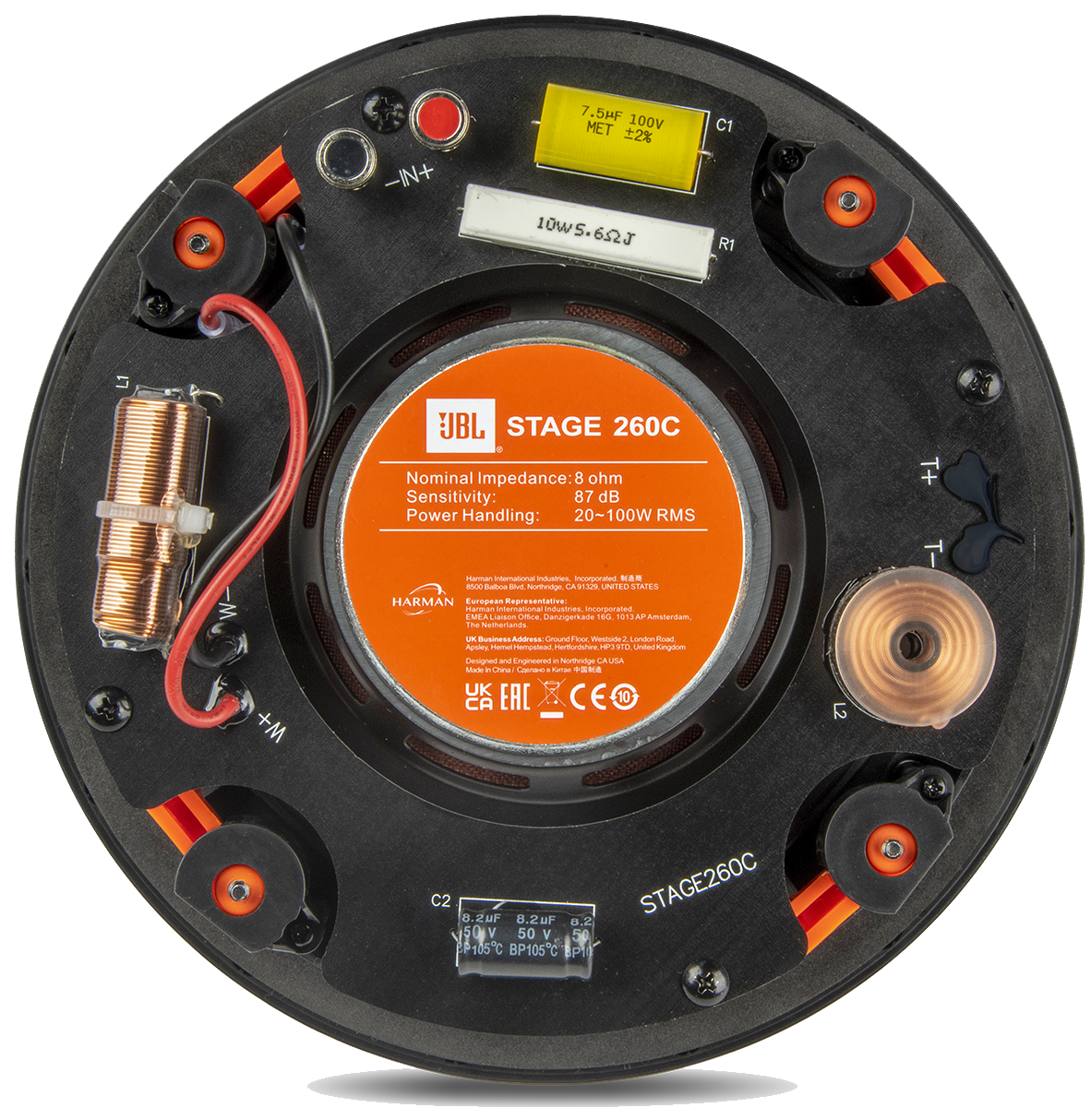 Seria głośników instalacyjnych JBL Stage została zaprojektowana, aby dostarczyć kultowy dźwięk JBL w formie, która wtapia się w otoczenie. Wszystkie modele są wizualnie dyskretne, maskownice nie posiadają ramek. Dzięki temu głośniki są słyszalne, ale niewidoczne. JBL Stage 260C to niskoprofilowy 2-drożny głośnik sufitowy do zabudowy z bezramkową maskownicą w kolorze białym o szerokiej dyspersji dźwięku. Stage 260C posiada 6,5-calowy (165 mm) głośnik niskotonowy z membraną policelulozową i 1-calową (25 mm) aluminiową kopułkę wysokotonową z falowodem i soczewką akustyczną. Łatwa instalacja możliwa jest dzięki standardowi "X2 Leg".