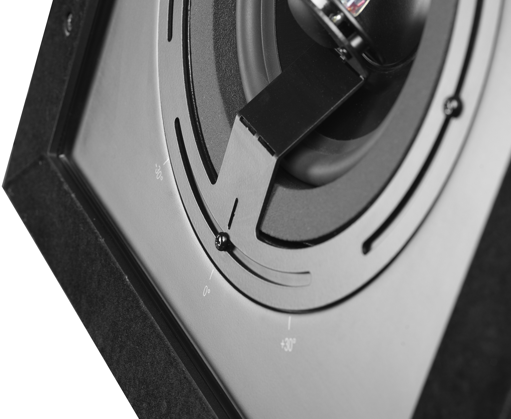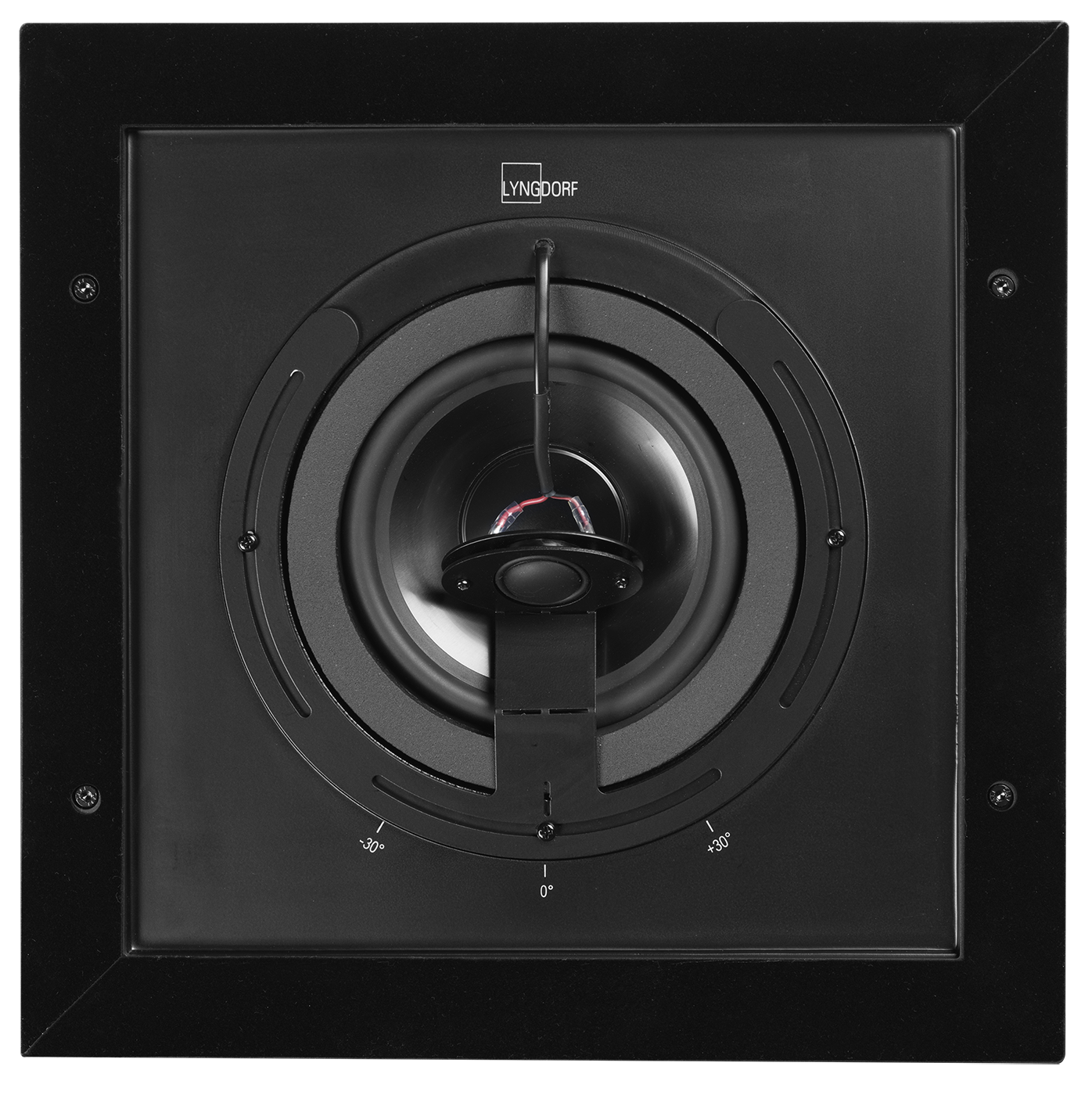 Model Lyngdorf D-5 IC wyposażono w regulowany, ustawiony pod kątem głośnik wysokotonowy. Taka konstrukcja w połączeniu z kwadratową obudową pozwala na efektywne skierowanie dźwięku w stronę obszaru odsłuchowego, co jest szczególnie przydatne w zastosowaniach immersyjnych, np. przy montażu głośników u góry z przodu, po bokach lub za słuchaczami. Promieniowanie dźwięku z głośnika wysokotonowego można dostroić po montażu.