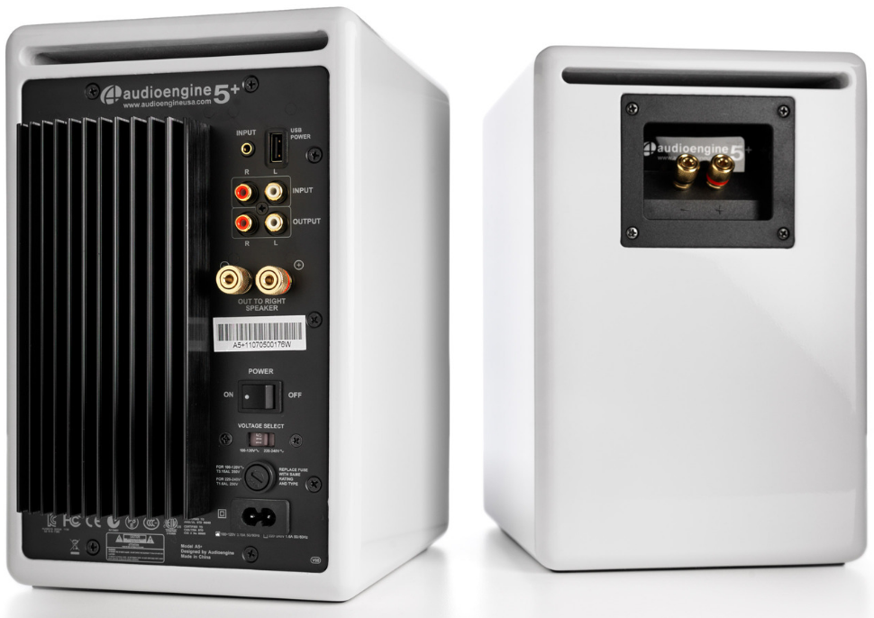 Zintegrowanie głośników ze wzmacniaczem eliminuje konieczność instalacji i podłączania zewnętrznego wzmacniacza, pozwala też zaoszczędzić sporo miejsca. Lewy głośnik podłączamy do gniazdka sieciowego, a prawy głośnik łączymy z lewym dołączonym do zestawu kablem. Wszystkie wewnętrzne elementy systemu zostały ze sobą precyzyjnie zestrojone, tak aby zapewnić doskonały dźwięk bez konieczności dopasowywania do siebie wzmacniaczy i klasycznych głośników. Użyte przetworniki oraz doskonała separacja sekcji lewego i prawego kanału pozwalaja na odtworzenie pełnowymiarowej sceny muzycznej, pokazując wyraźną przewagę A5+ nad konkurencyjnymi aktywnymi systemami dźwięku all-in-one.