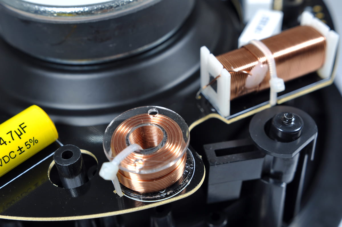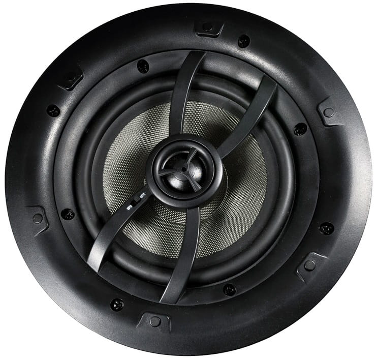 • zewnętrzny pierścień montażowy obudowy - niezależny od stalowego, tłoczonego maszynowo kosza głośnika, pierścień mocujący z łapami blokującymi; pozwala to skutecznie ograniczyć rezonanse przenoszone z głośnika na ścianę i ze ściany na głośnik