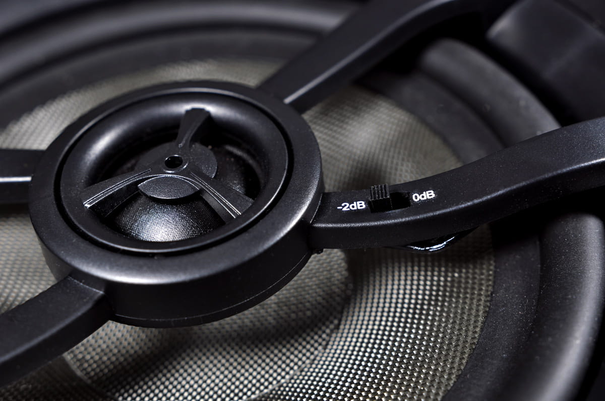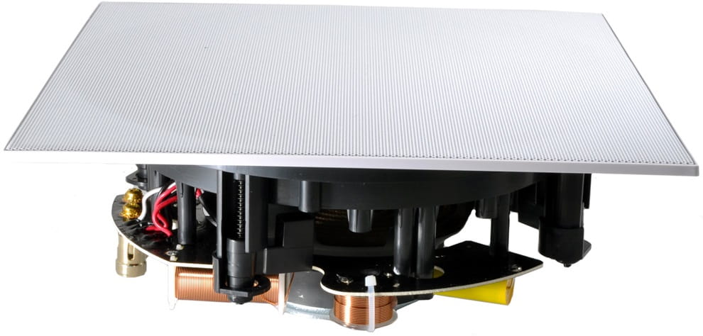 • zewnętrzny pierścień montażowy obudowy - niezależny od stalowego, tłoczonego maszynowo kosza głośnika, pierścień mocujący z łapami blokującymi; pozwala to skutecznie ograniczyć rezonanse przenoszone z głośnika na ścianę i ze ściany na głośnik