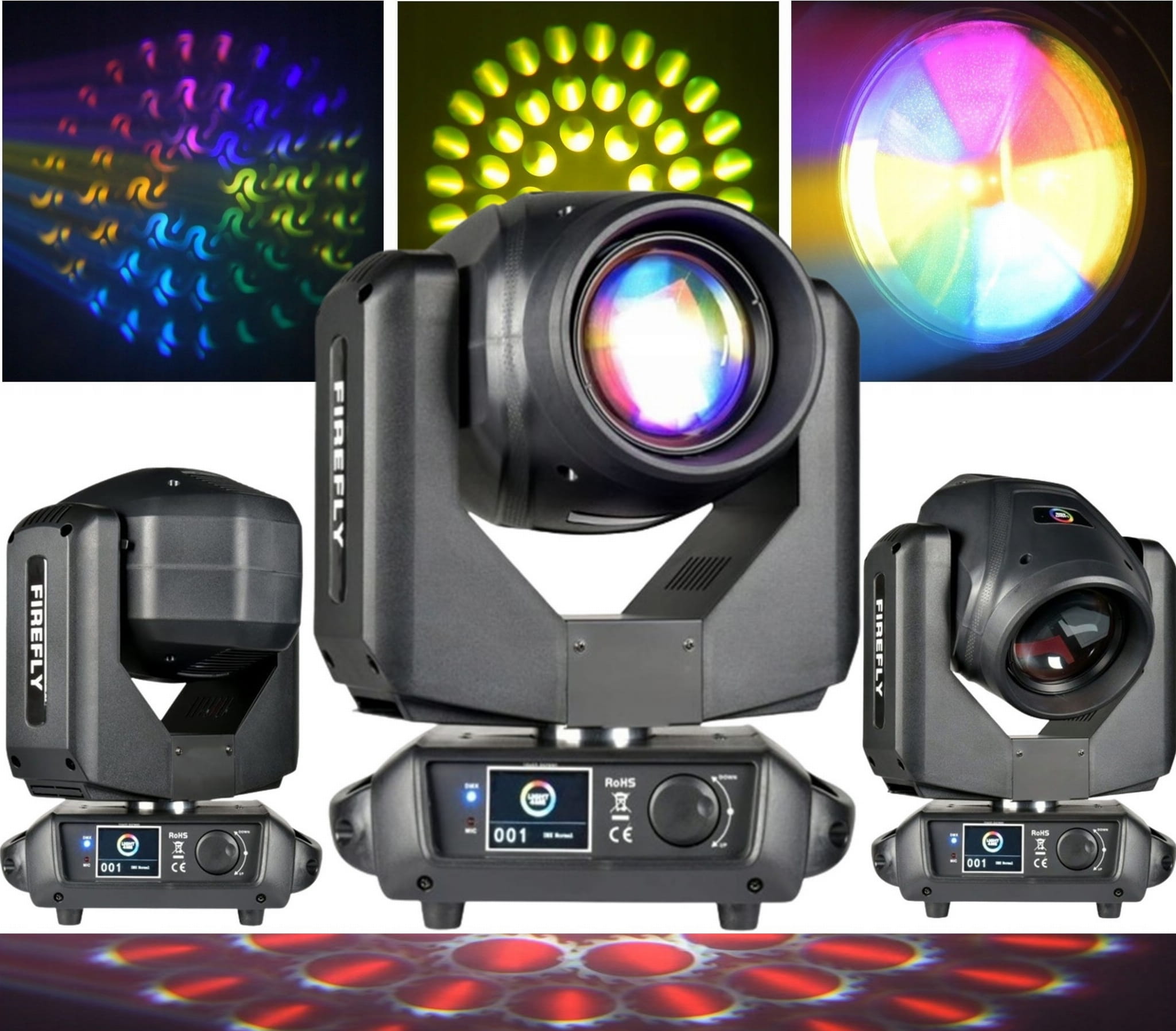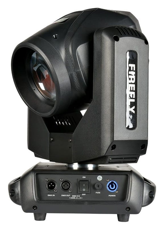 Komponenty reflektora zamknięte zostały w wytrzymałej obudowie wyposażonej w uchwyty umożliwiające przenoszenie oraz instalację sprzętu na rampach i kratownicach scenicznych. Ruchoma głowa dysponuje tarczą 14 kolorów oraz kołem gobo, na którym znajduje się 17 wzorów modelujących wiązkę, w tym 4 szklane, kolorowe kształty. Dodatkowo posiada obrotową pryzmę, która rozszczepia światło jednocześnie na 8, 16 i 24 wiązki tworząc w ten sposób ciekawy efekt rozety. Firefly oferuje również funkcję RDM (Remote Device Management) umożliwiającą zdalne zarządzanie jednostką. Jest ona bardzo przydatna w sytuacjach, gdy dostęp do reflektora jest utrudniony, a zachodzi konieczność zmiany ustawień, które normalnie wykonalibyśmy z poziomu menu (np. adresowania, ilości kanałów, itp.).
