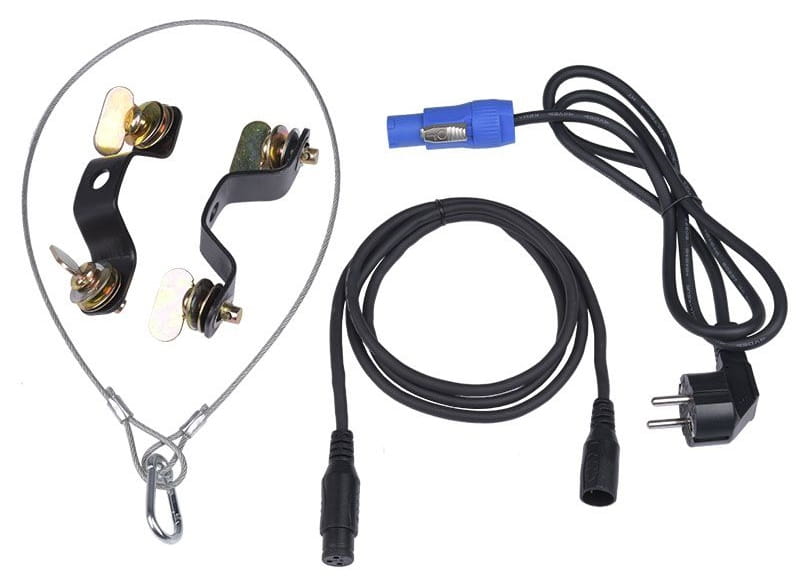 | W zestawie | 2 uchwyty montażowe, przewód zasilający, przewód DMX |
