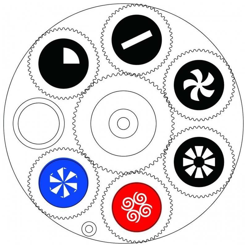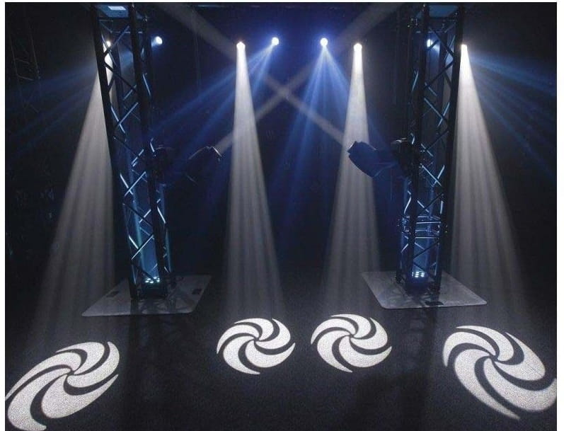 - głowica posiada rotacyjne dwukierunkowe koło, na którym znajduje się 7 kolorów, statyczną oraz obrotową tarczę gobo, na których znajduje się łącznie 14 wzorów kształtujących wiązkę, a także 3-ramienny, obrotowy pryzmat z regulacją kierunku i prędkości obrotów