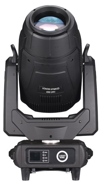 LIGHT4ME VENOM HYBRID 450 CMY to profesjonalna, hybrydowa głowica ruchoma LED, wyposażona w mocną, 450-watową białą diodę emitującą wiązkę światła, której kąt świecenia można dostosować w zakresie 3-30° za pomocą wbudowanej funkcji zoom. Dzięki rozbudowanym funkcjom, ta dynamiczna głowica LED stanowi doskonałe oświetlenie sceniczne. Idealnie spisuje się w czasie koncertów muzycznych i różnego typu występów, w domach i ośrodkach kultury, a także w klubach tanecznych i dyskotekach. Znajduje również zastosowanie jako oświetlenie dla zespołów weselnych i mobilnych DJ-ów ✅.