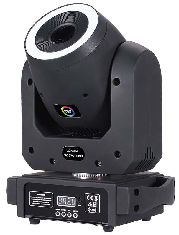 Light4Me 100 Spot Ring posiada solidną obudowę z dwoma uchwytami po bokach, ułatwiającymi przenoszenie głowicy. Na spodzie znajduje się mocowanie umożliwiające instalację sprzętu na kratownicach i rampach oświetleniowych. Z tyłu znajdują się złącze zasilania i gniazda DMX. Przednia część obejmuje czytelny panel sterowania z cyfrowym wyświetlaczem i czteroma przyciskami. Za ich pomocą możemy ręcznie zmieniać ustawienia parametrów w menu lub wybrać jeden z czterech trybów pracy jednostki: