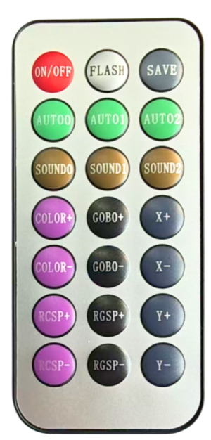 | Sterowanie | automatyczne, DMX, pilot bezprzewodowy na podczerwień (IR), ręczne |