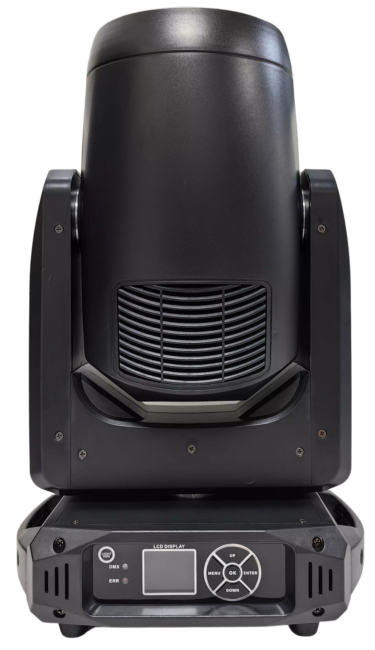 Light4Me Prism Beam 250 Ring posiada solidną obudowę z dwoma rączkami po bokach, ułatwiającymi przenoszenie głowicy ✨. Klasa IP20 zabezpiecza urządzenie przed wnikaniem do niego stałych ciał obcych o średnicy 12,5 mm i większej, zapewniając odpowiednią ochronę w warunkach wewnętrznych, co czyni urządzenie idealnym do długookresowego użytku❗Na spodzie urządzenia znajdują się otwory montażowe, które dzięki dołączonym uchwytom montażowym, umożliwiają instalację sprzętu na kratownicach i rampach oświetleniowych ✔. Z tyłu znajdują się złącze zasilania powercon i gniazda wejścia/wyjścia DMX. Przednia część obejmuje czytelny panel sterowania z cyfrowym wyświetlaczem i pięcioma przyciskami ✅. Za ich pomocą możemy ręcznie zmieniać ustawienia parametrów w menu lub wybrać jeden z czterech trybów pracy urządzenia: