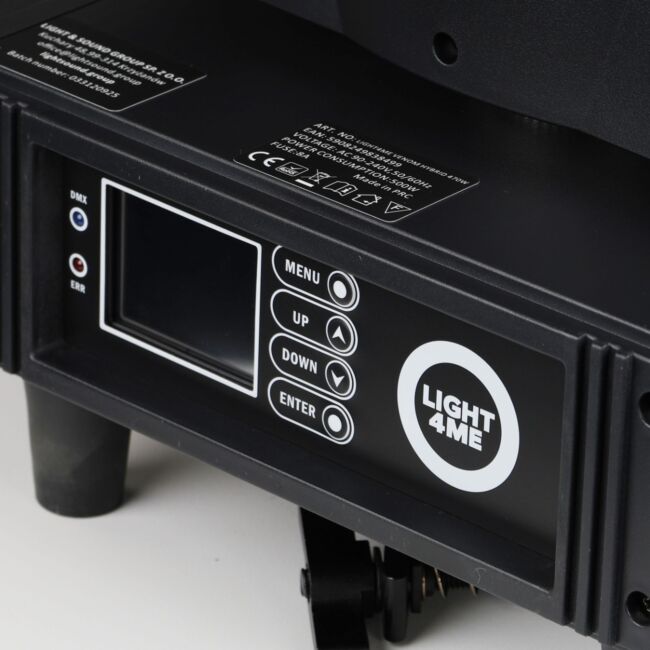 ⚡ Pan 540° i Tilt 270° ze szczegółową kontrolą w 16 bitach, automatyczna korekcja pozycji głowicy, odwracanie osi oraz zamiana kanałów ruchu gwarantują powtarzalność programów i stabilną pracę nawet w rozbudowanych instalacjach DMX. To rozwiązanie, które sprawdzi się w trasie koncertowej, na scenie festiwalowej oraz w stałej instalacji klubowej.