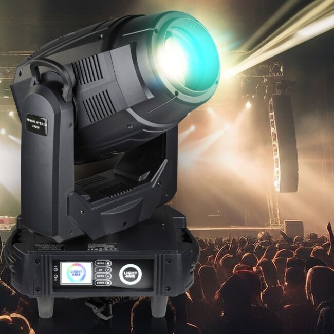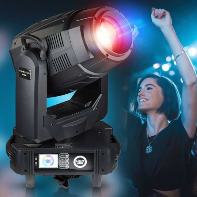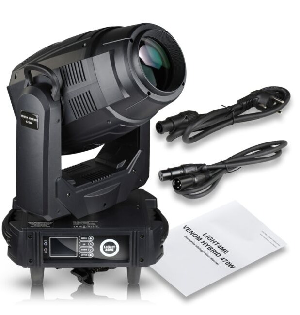 ❇️ Light4Me Venom Hybrid 470W to zaawansowane oświetlenie sceniczne DMX, które zostało zaprojektowane z myślą o koncertach, eventach plenerowych, klubach muzycznych, teatrach, domach kultury oraz firmach rentalowych, które oczekują precyzji, widowiskowych efektów i pełnej kontroli nad światłem. Dzięki białej diodzie LED 470W, elektronicznemu zoomowi 3-35° oraz rozbudowanym efektom optycznym, oprawa sprawdza się zarówno na dużych scenach, jak i w bardziej kameralnych realizacjach.