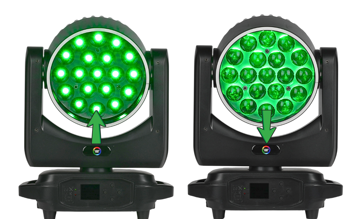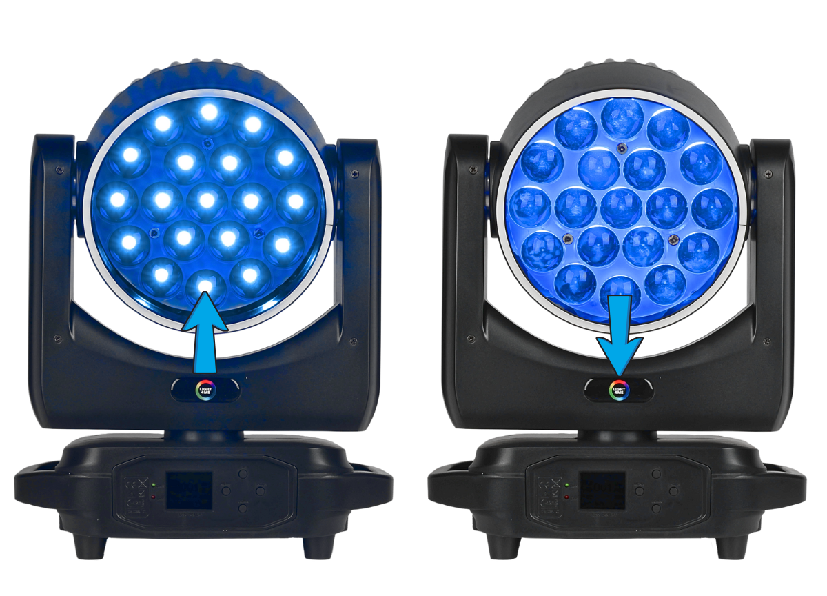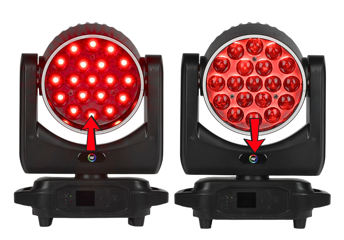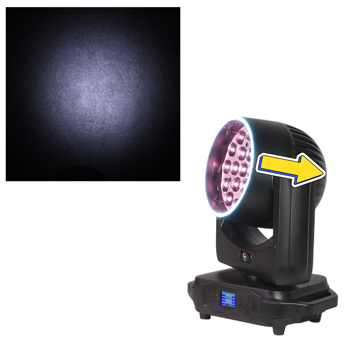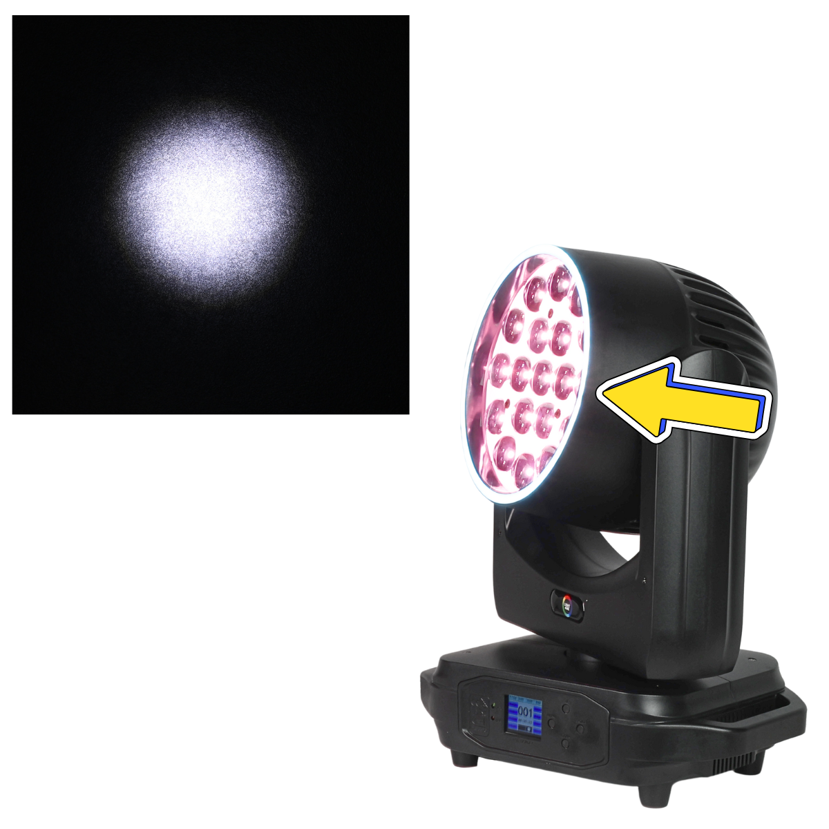- Źródło światła: 19x15W RGBW LED 4w1 + 60x0,3W RGB SMD LED 3w1 (efekt ring)
