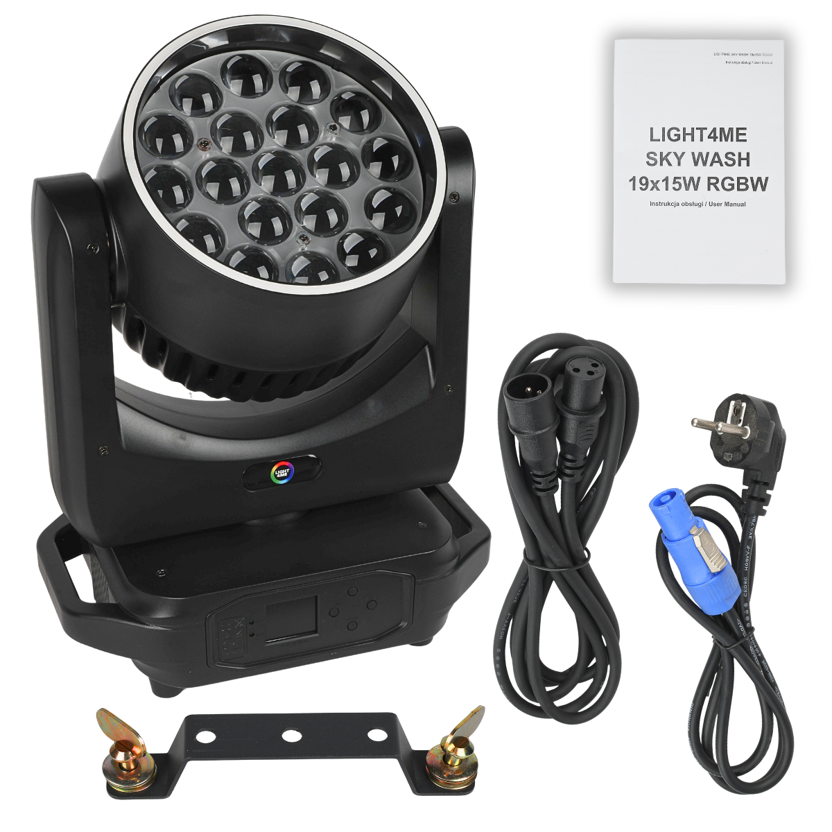 ⭐ Light4Me Sky Wash 19x15W RGBW – profesjonalna głowica ruchoma wash z efektem ring