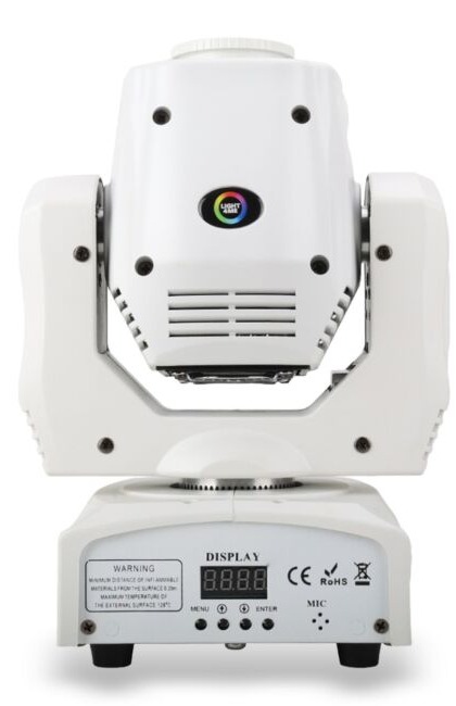 - Typ urządzenia: głowica ruchoma spot LED DMX z pilotem bezprzewodowym i uchwytem montażowym