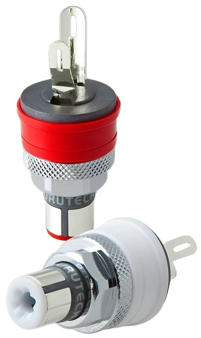 Wysokiej jakości ultralekkie gniazda RCA Furutech FT-903R. Para gniazd RCA składa się 2 sztuk oznaczonych kolorem białym i czerwonym.