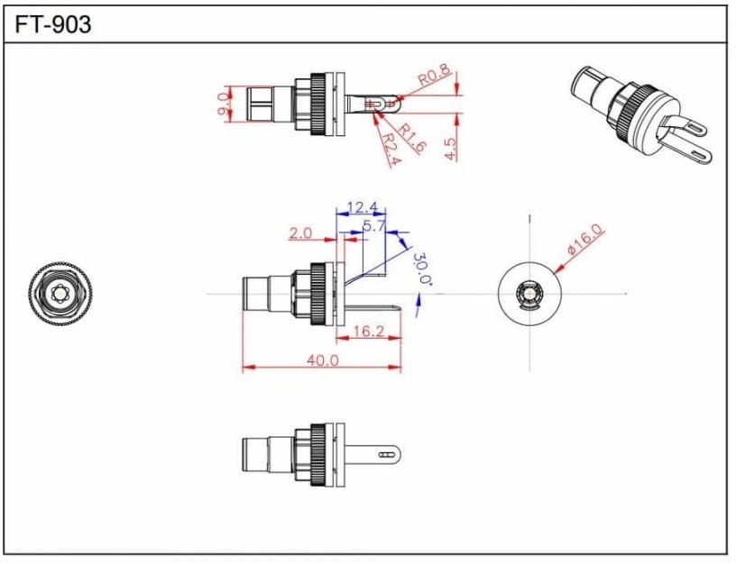 • Średnica zewnętrzna obudowy - 16,0 mm