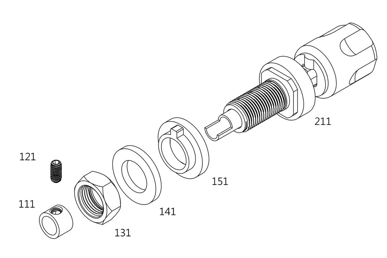 - usuń nakrętkę (element 131) i podkładkę (141);
