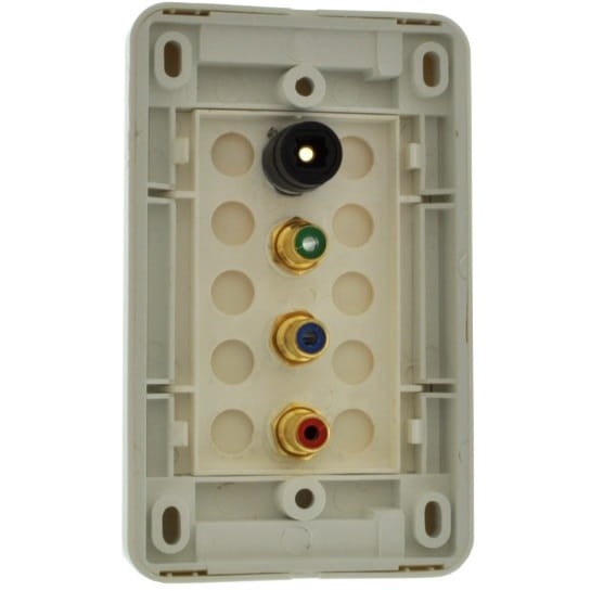 Panel wyposażony jest w 3 gniazda RCA oraz jedno gniazdo optyczne (Toslink).
